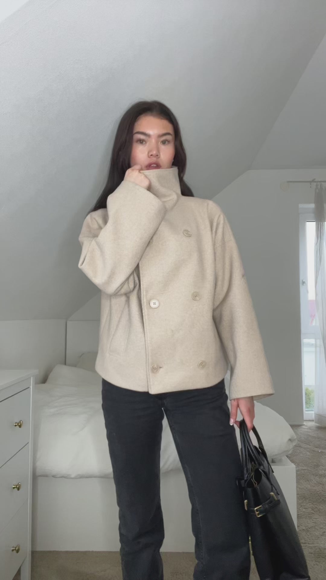 Complice idéal des journées fraîches, ce manteau court incarne un parfait équilibre entre confort et style urbain. Sa coupe moderne à double boutonnage est sublimée par un col large et structuré qui souligne naturellement le port de tête. Conçu dans une matière douce et enveloppante, il réchauffe sans alourdir.